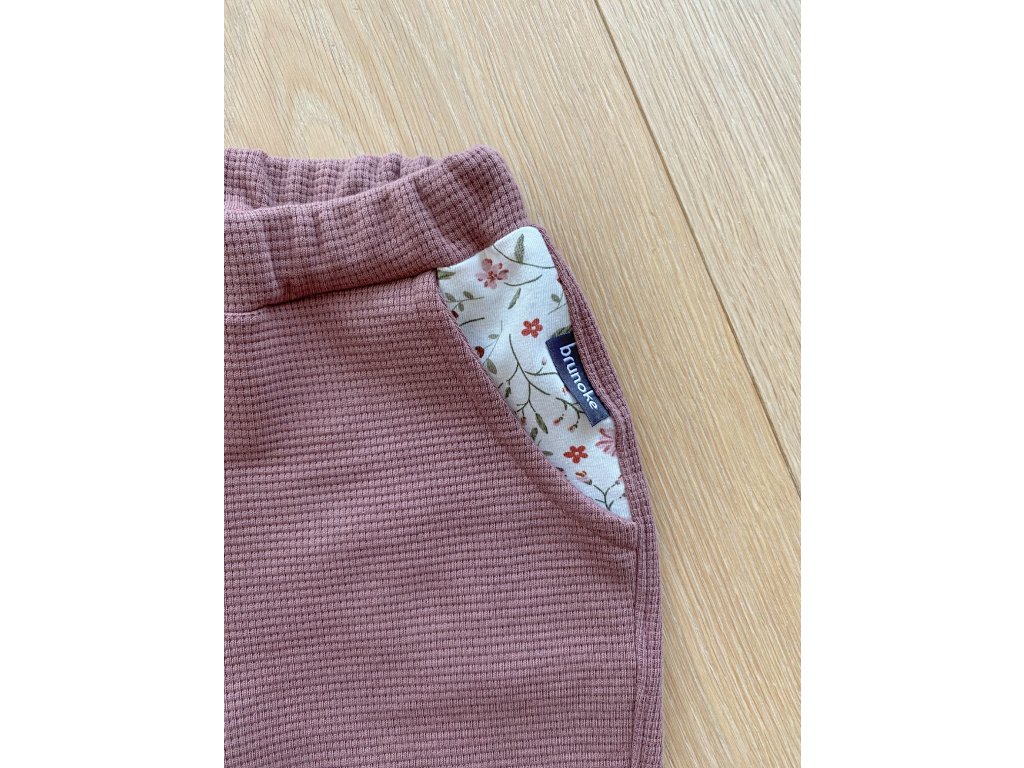 Waflový úplet je nejen velmi měkký a příjemný na dotek, ale i prodyšný a elastický, což zajišťuje ideální teplotní komfort i při celodenním nošení. Tento materiál je také odolný a snadno udržovatelný, což je velkou výhodou pro rušný život malých dětí a jejich maminek. Kapsy na přední straně přidávají kalhotám praktický prvek, který je zároveň stylovým detailem.