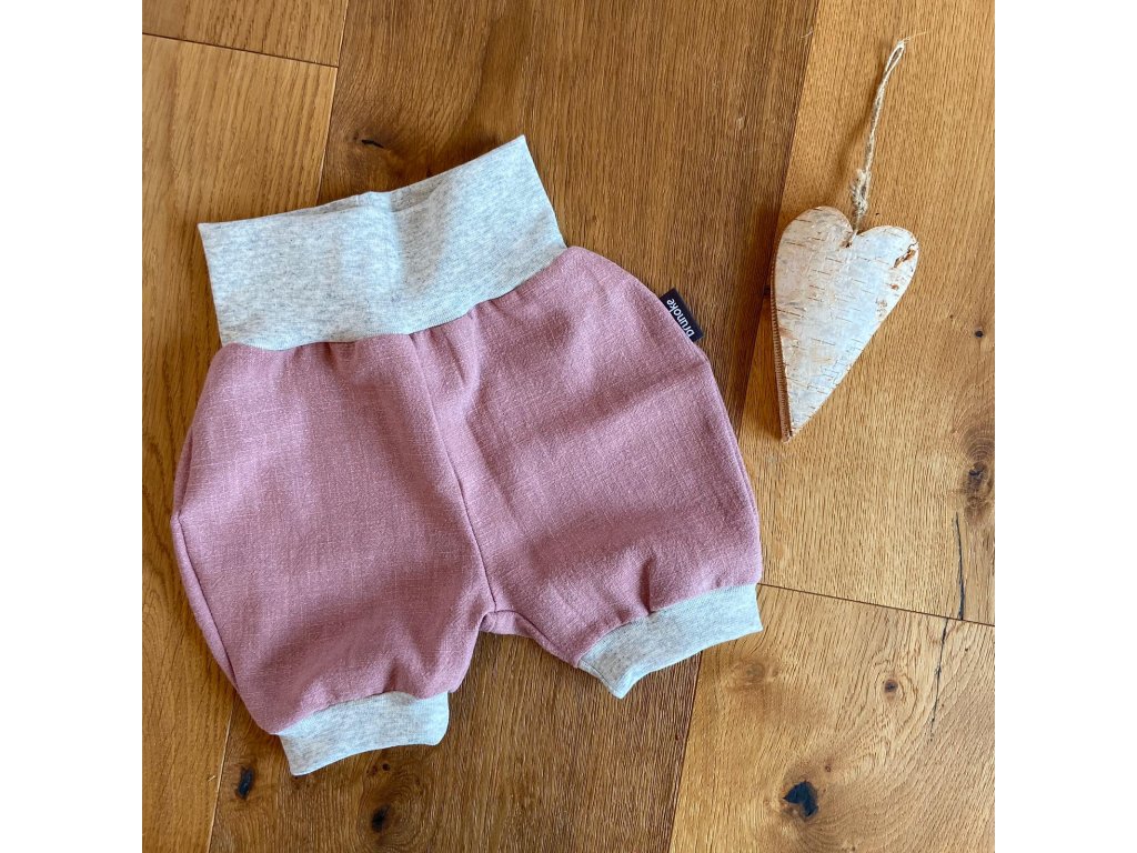 Kraťasy z příjemného lenu, který v létě krásně chladí. Na výběr máte hned z několika barev. Barva nápletů bude vždy světle šedá melírovaná.