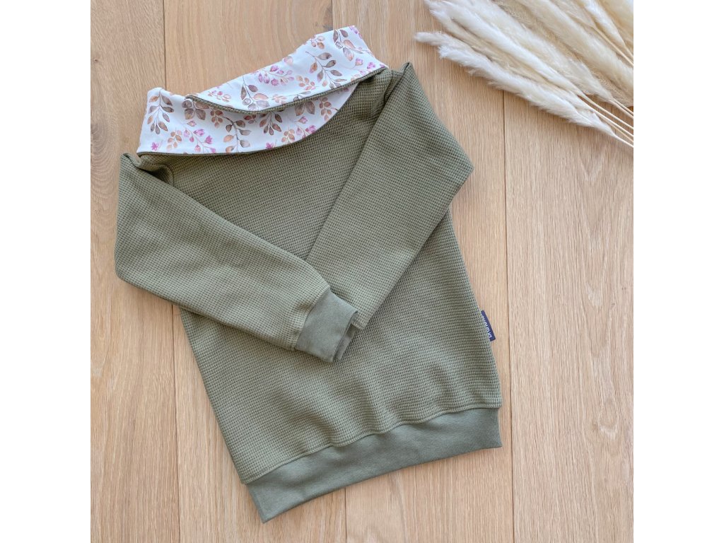 Mikina z vaflového úpletu olivová/podzimní větve - vel. 104
