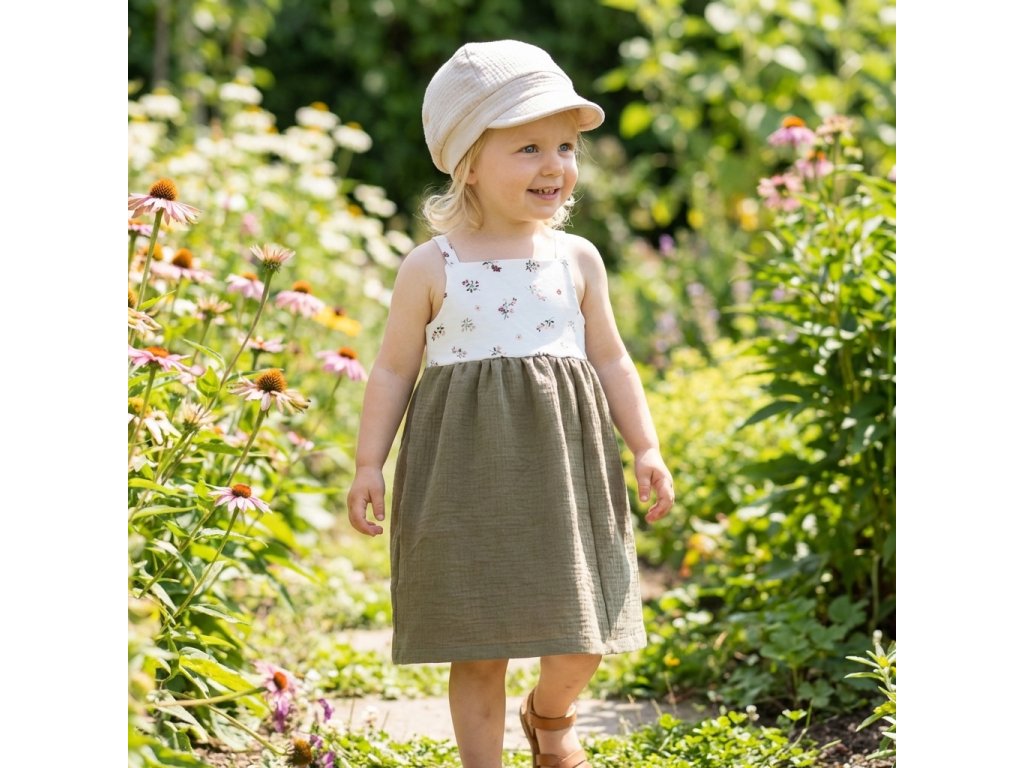 Lehké mušelínové šatičky, které spojují pohodlí přírodních materiálů s jemným designem. Ideální pro malé holčičky, které chtějí volnost při pohybu a zároveň vypadat přirozeně krásně – bez zbytečné okázalosti.