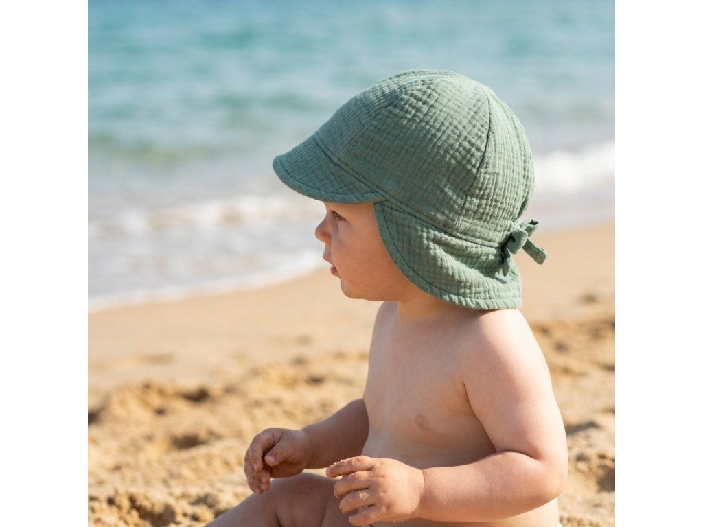 Lehký dětský mušelínový klobouček ochrání před sluncem a zajistí maximální pohodlí během teplých dnů. Jemná přírodní bavlna je šetrná k citlivé dětské pokožce a prodloužená zadní část chrání krk před slunečními paprsky. Stylový, pohodlný a udržitelný doplněk pro každý letní den. ☀️