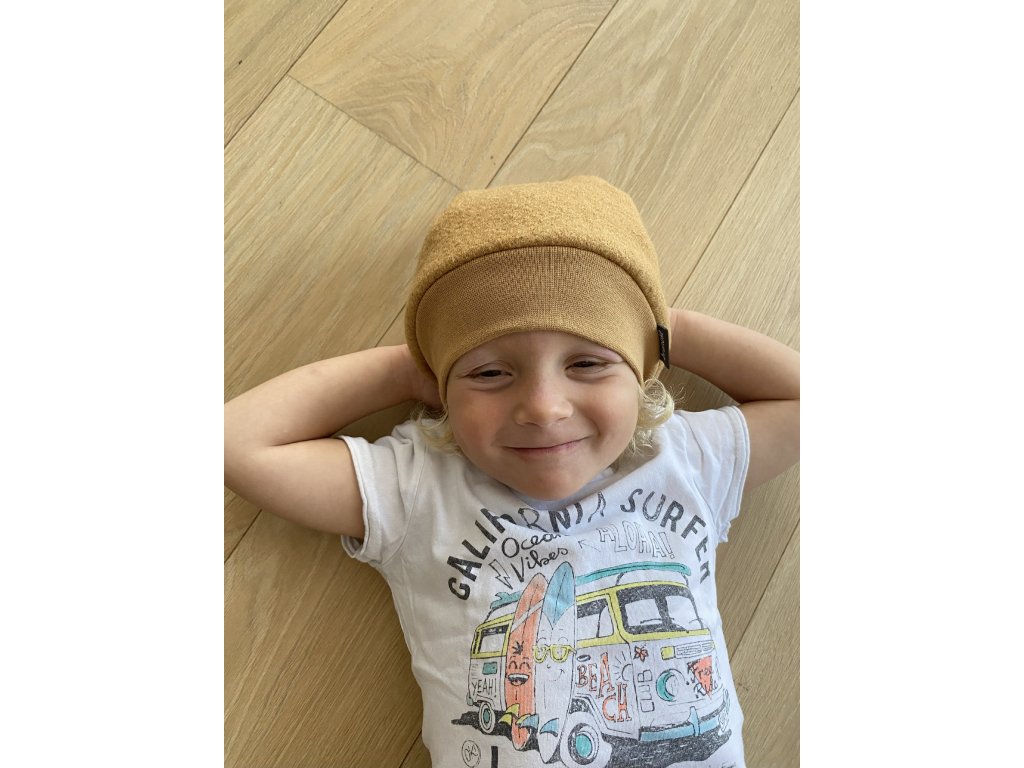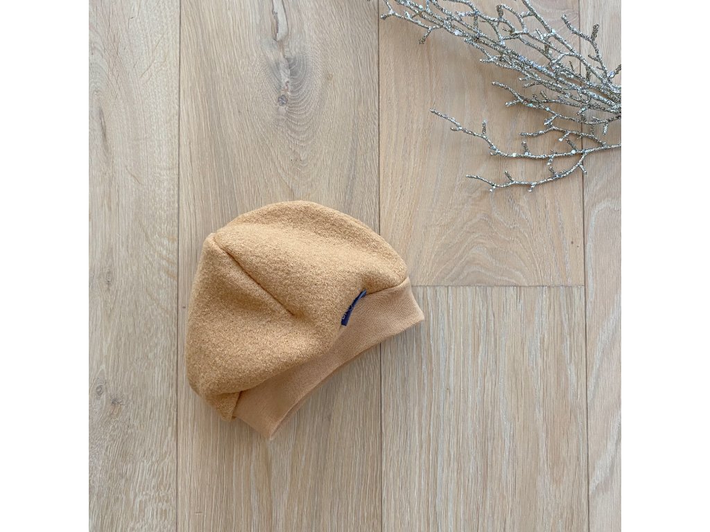 Hřejivá a měkoučká čepice z přírodní vařené vlny s bavlněným úpletem uvnitř. Díky nápletu skvěle drží, neklouže do obličeje a chrání dětskou hlavičku před chladem a větrem – ideální do zimních dnů.
