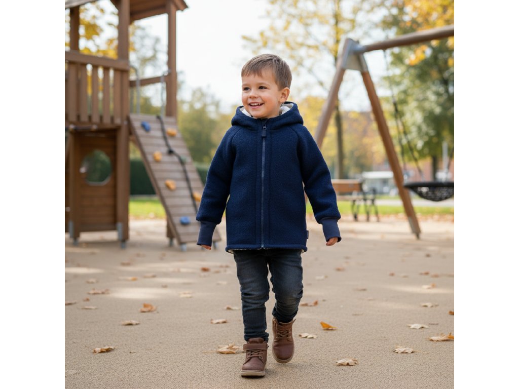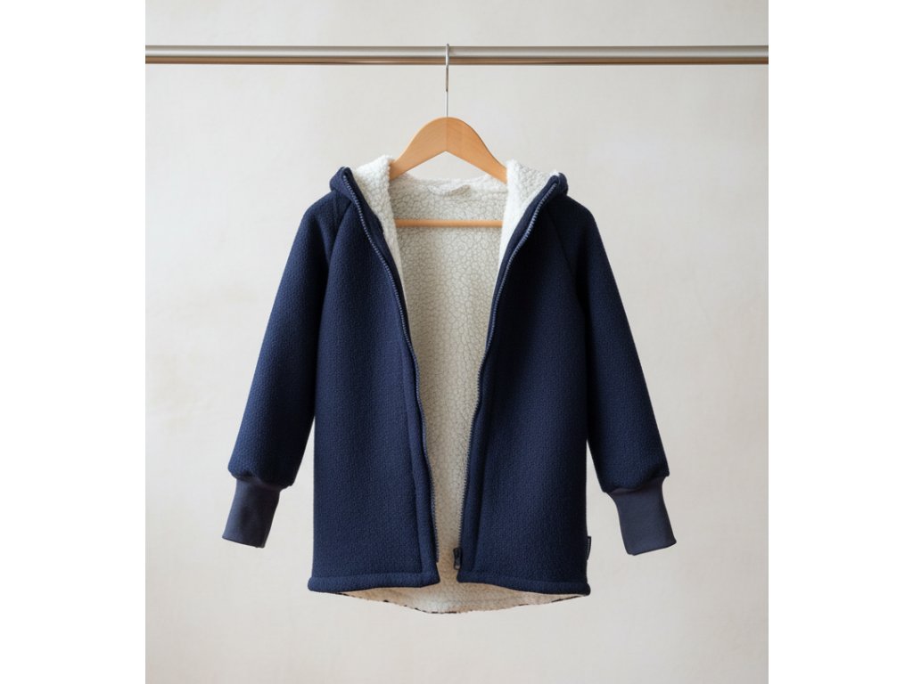 Dětská bunda z vařené vlny s podšívkou z bavlněného beránka – hřejivá, přírodní a stylová volba pro zimní dny