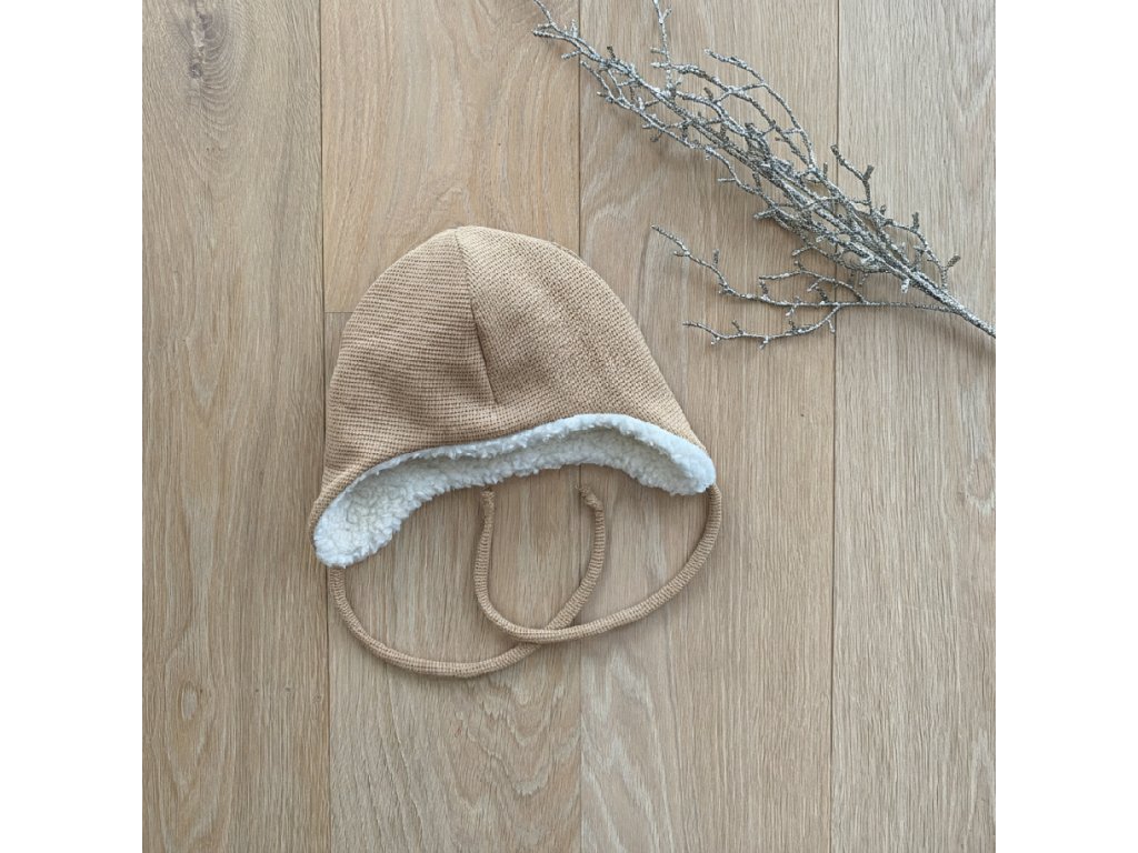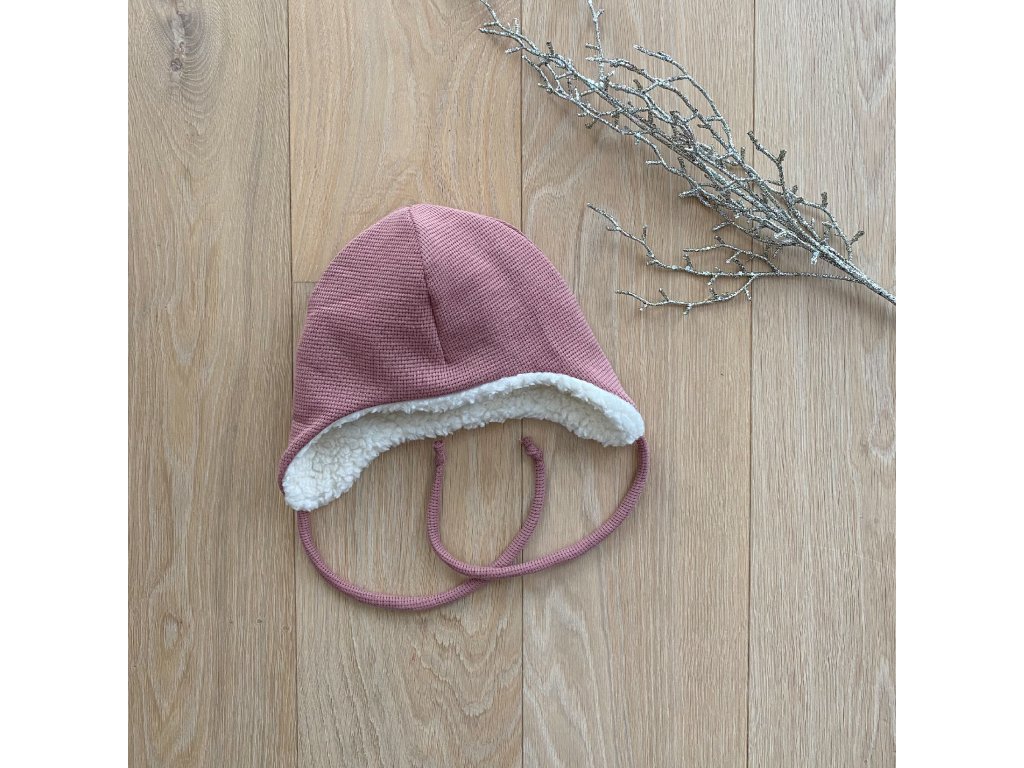 Dětská zimní čepice ušanka z vaflového úpletu s beránkem