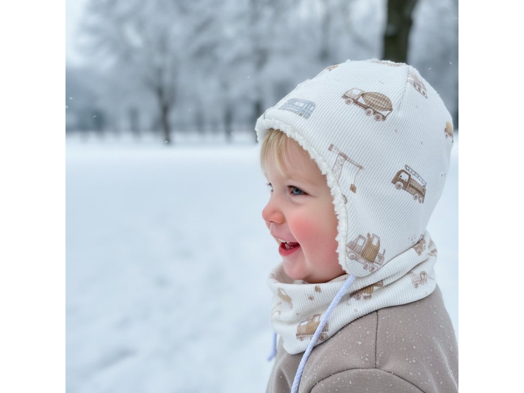 Díky praktickým šňůrkám na zavázání čepice dobře drží na hlavě, nepadá a chrání ouška i čelo před větrem a chladem. Čepice je navržena s ohledem na pohodlí a pohyb dětí – žádné škrábání ani nepříjemné švy.