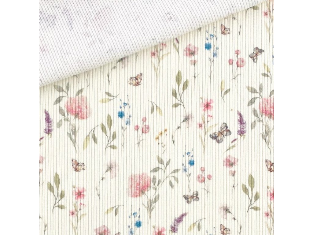 Materiál: žebrovaný úplet – 95 % bavlna, 5 % elastan; beránek – 100 % bavlna